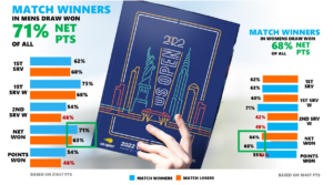 Every week, Tennis Analytics dives deep into the data, bringing you a stat of the week to help you understand tennis better and become a little smarter. For this week, we have a recap of the major statistics for the 2022 US Open, separating Match Winners’ from Match Losers’ data.