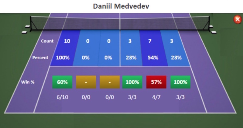 You can see that Tsitsipas’ best return location to the Medvedev backhand where he won 3 out of 4 points and missed 0 returns.