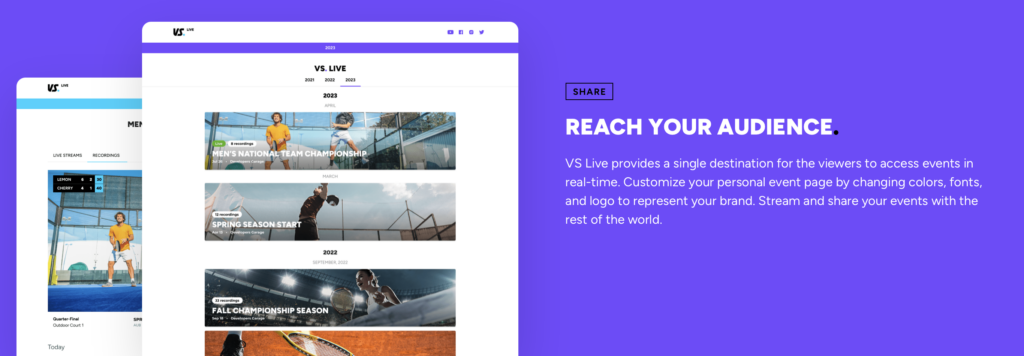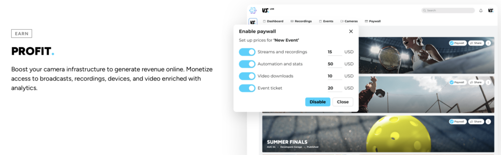 - Platform Access & Unlimited Live streaming – $62.50/mo/court (<8 courts), $55/mo/court (9+ courts)
